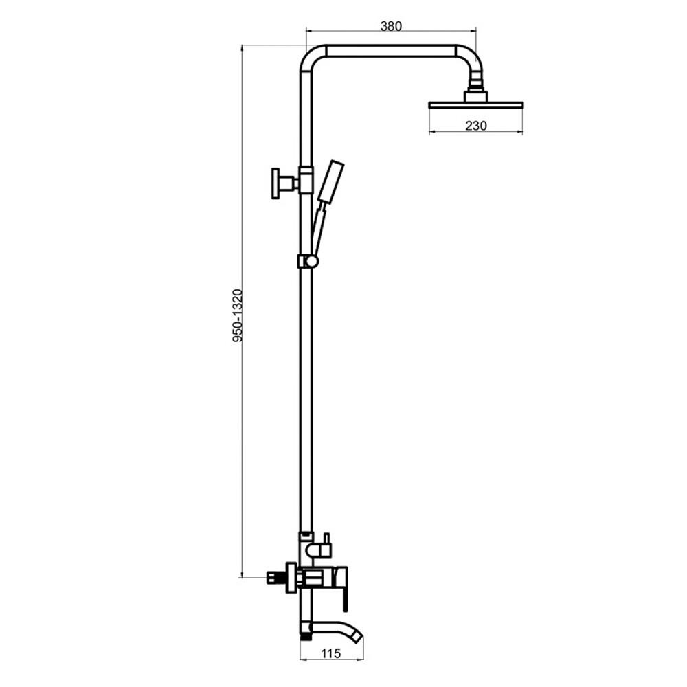 Смеситель – 1 шт., стойка для душа – 1 шт., тропическая лейка – 1 шт., лейка для душа – 1 шт., шланг – 1 шт., эксцентрики – 1 комплект, отражатели – 1 комплект, паспорт – 1 шт.