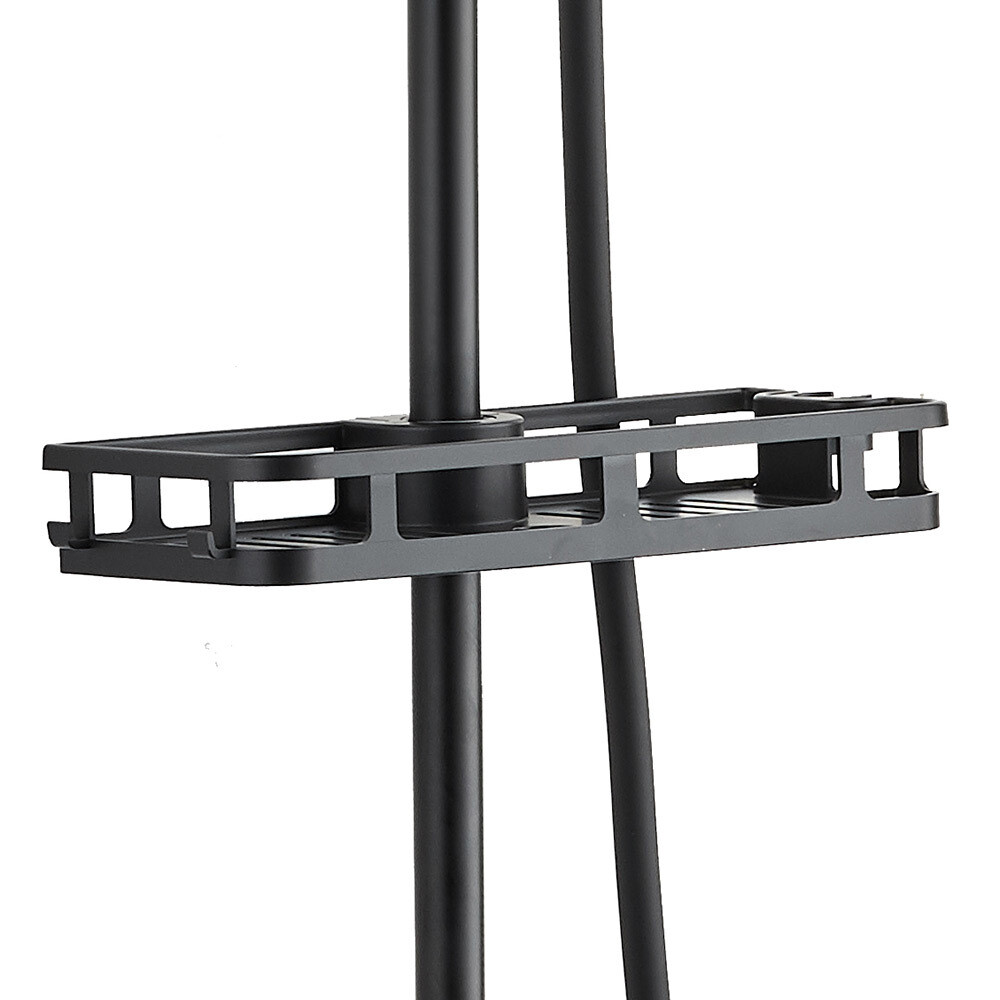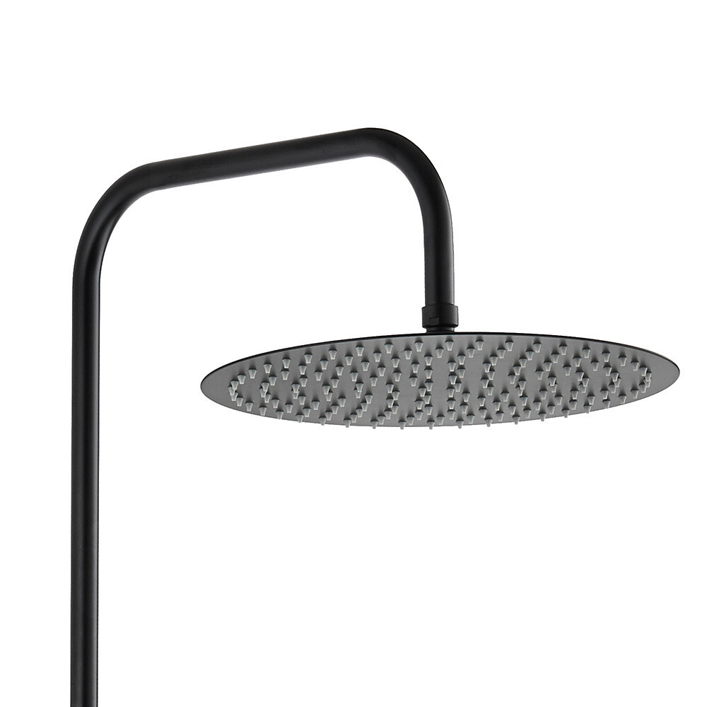 Душевой комплект с верхним душем и полкой черного матового цвета сочетает в себе современный дизайн и высокое качество.