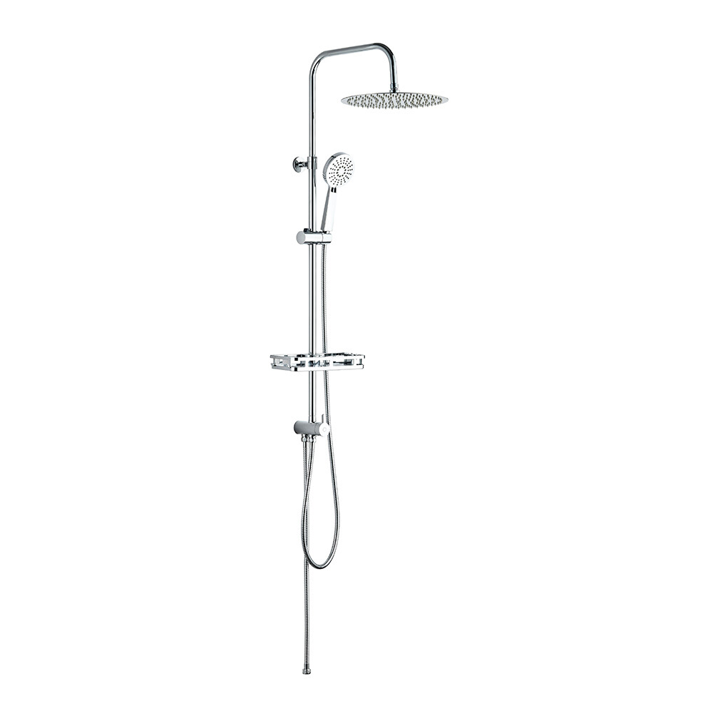 Душевой комплект с верхним душем и полкой цвета хром сочетает в себе современный дизайн и высокое качество.