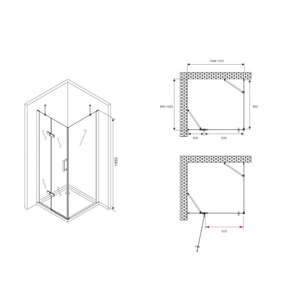 Душевой уголок Abber Zart хром 110х100х195 см прямоугольник стекло прозрачное 6 мм (AG08110-S101)