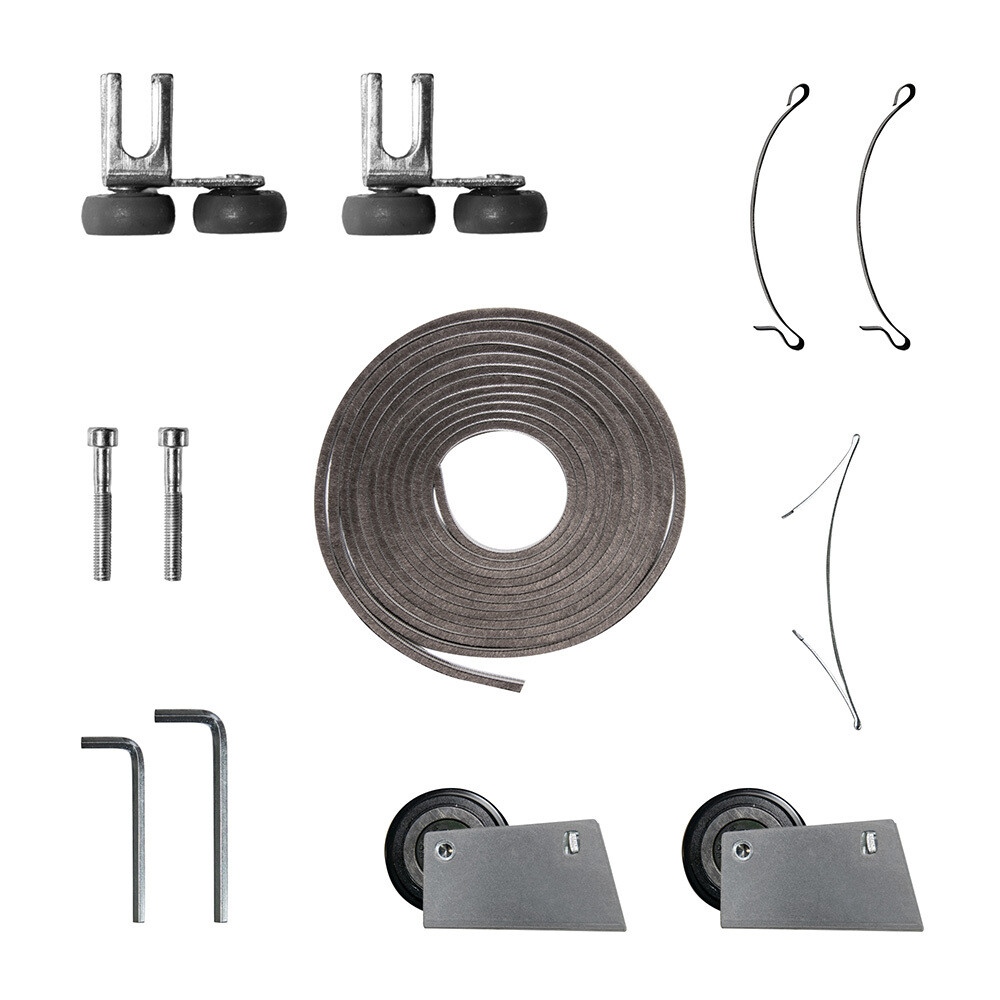 Комплектация: Дверь-купе, ручка-направляющая, ролики верхние и нижние, стопор.