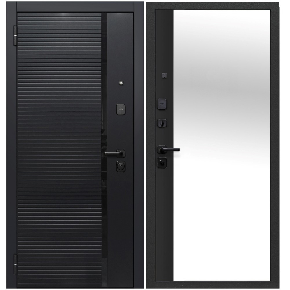 Дверь входная Ferroni 7,5СМ Черное зеркало левая сатин черный — сатин черный 960х2050 мм