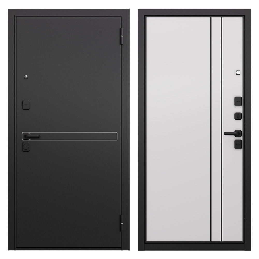 Дверь входная Mastino Райд правая черный муар металлик — белый софт 860х2050 мм