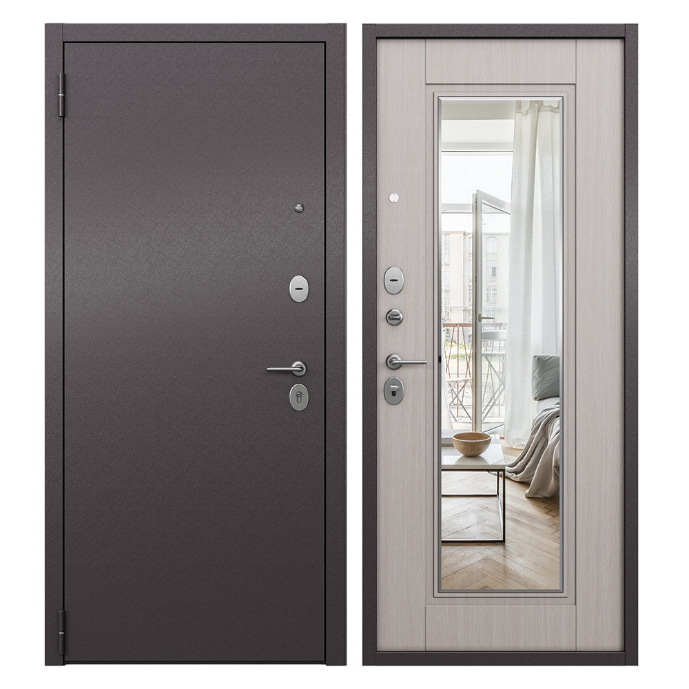Дверь входная Mastino Ютта левая букле шоколад — ларче бьянко с зеркалом 960х2050 мм