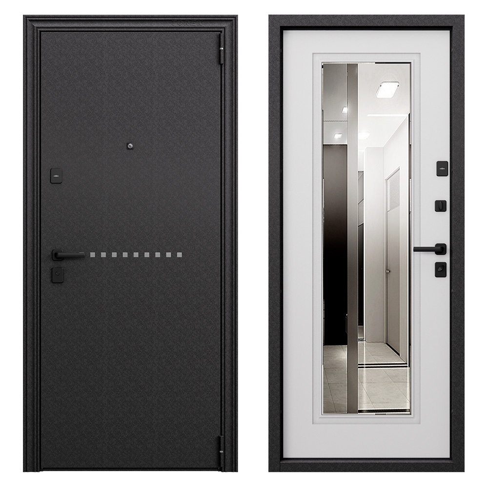 Дверь входная Torex Крафт Скай Беленый правая дуб беленый — черный шелк с зеркалом 950х2050 мм