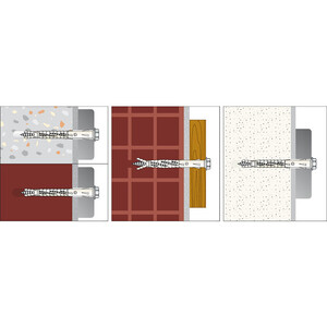 Фасадные дюбели предназначены для сквозного монтажа как в полнотелых, так и пустотелых (пористых, щелевых, поризованных) материалах.