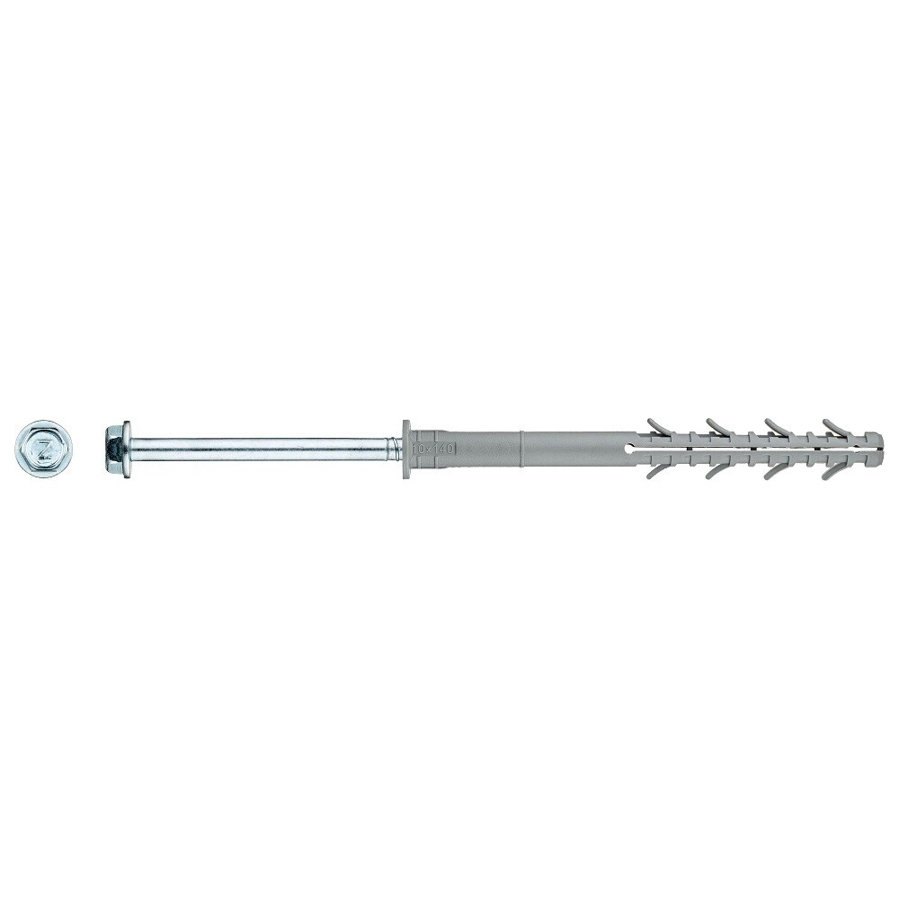 Дюбель фасадный предназначен для крепления строительных материалов и изделий к основаниям. Для средних и высоких нагрузок. Материал применения — тяжелый и легкий бетон, полнотелый и пустотелый керамический кирпич, силикатный кирпич, ячеисто- и керамзитобетонные блоки. Цилиндрический бортик дюбеля предотвращает контактную коррозию. Для установки необходимо предварительное сверление отверстия.