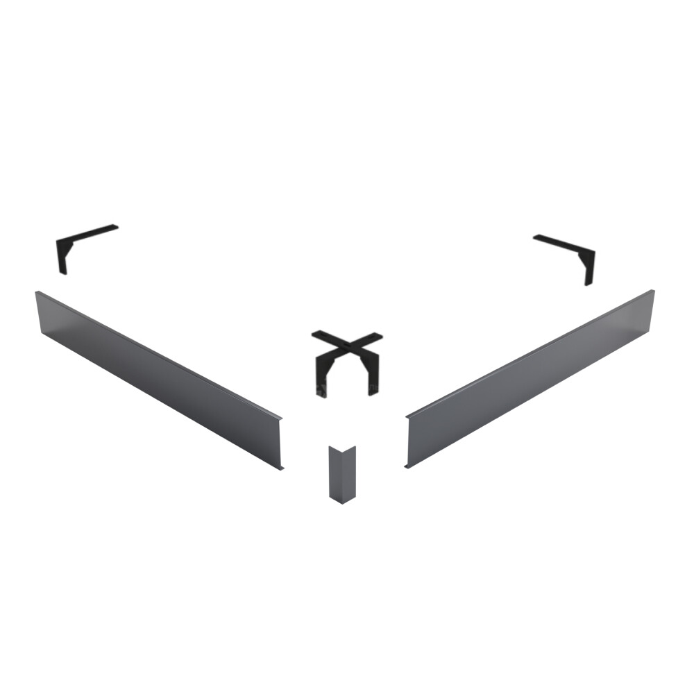 Декоративный экран предназначен для установки между поддоном и полом для того, чтобы скрыть элементы сливной системы (сифон, гофра). Высота экрана 10 см, изготовлен из металла. Цвет — графит.