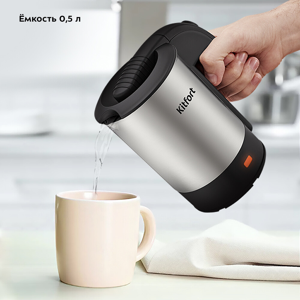 Электрический чайник Kitfort КТ-6190 0,5 л хром/черный