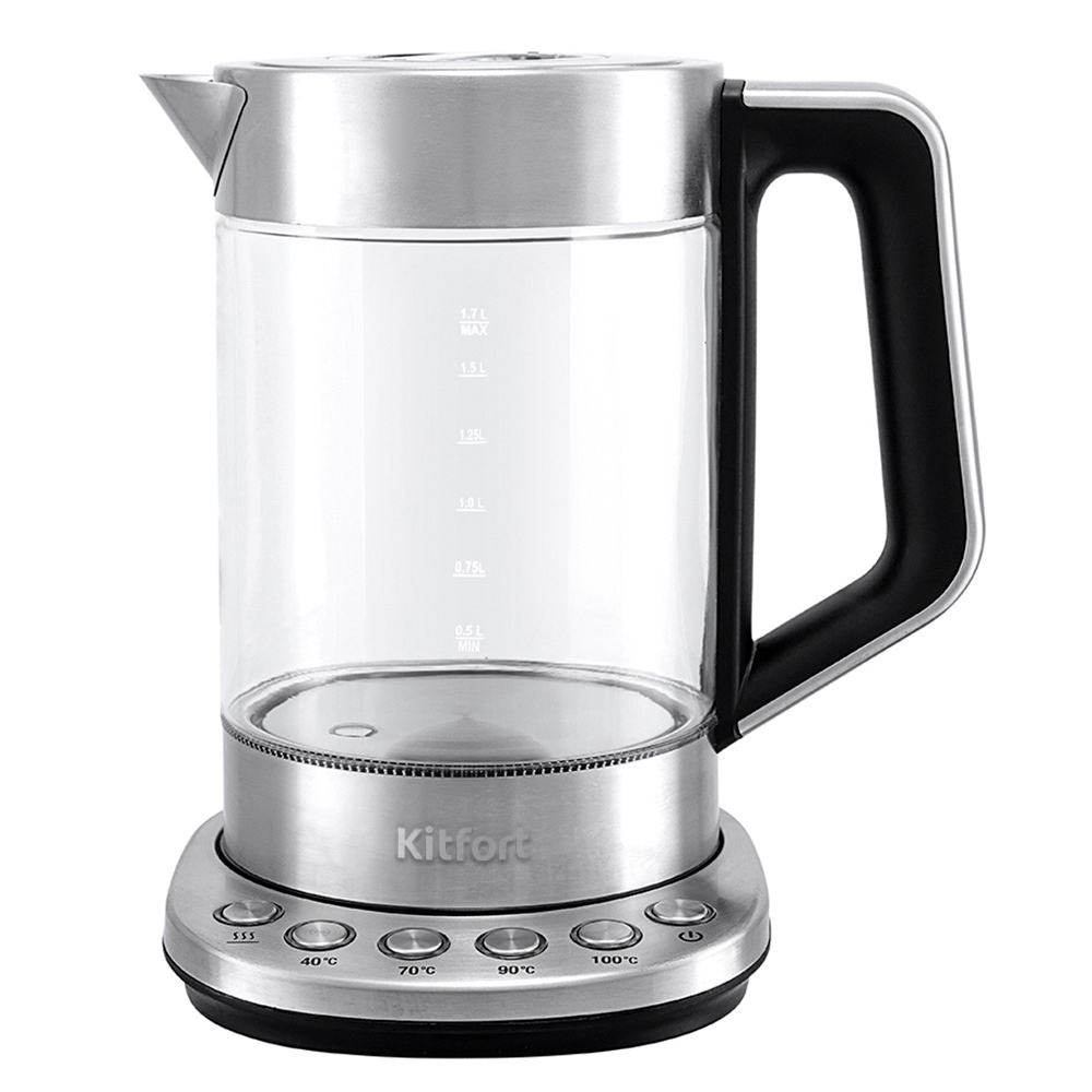 Электрический чайник с терморегулятором Kitfort КТ-622 может не только вскипятить воду, но и нагреть ее до температуры 40, 70 и 90°С.