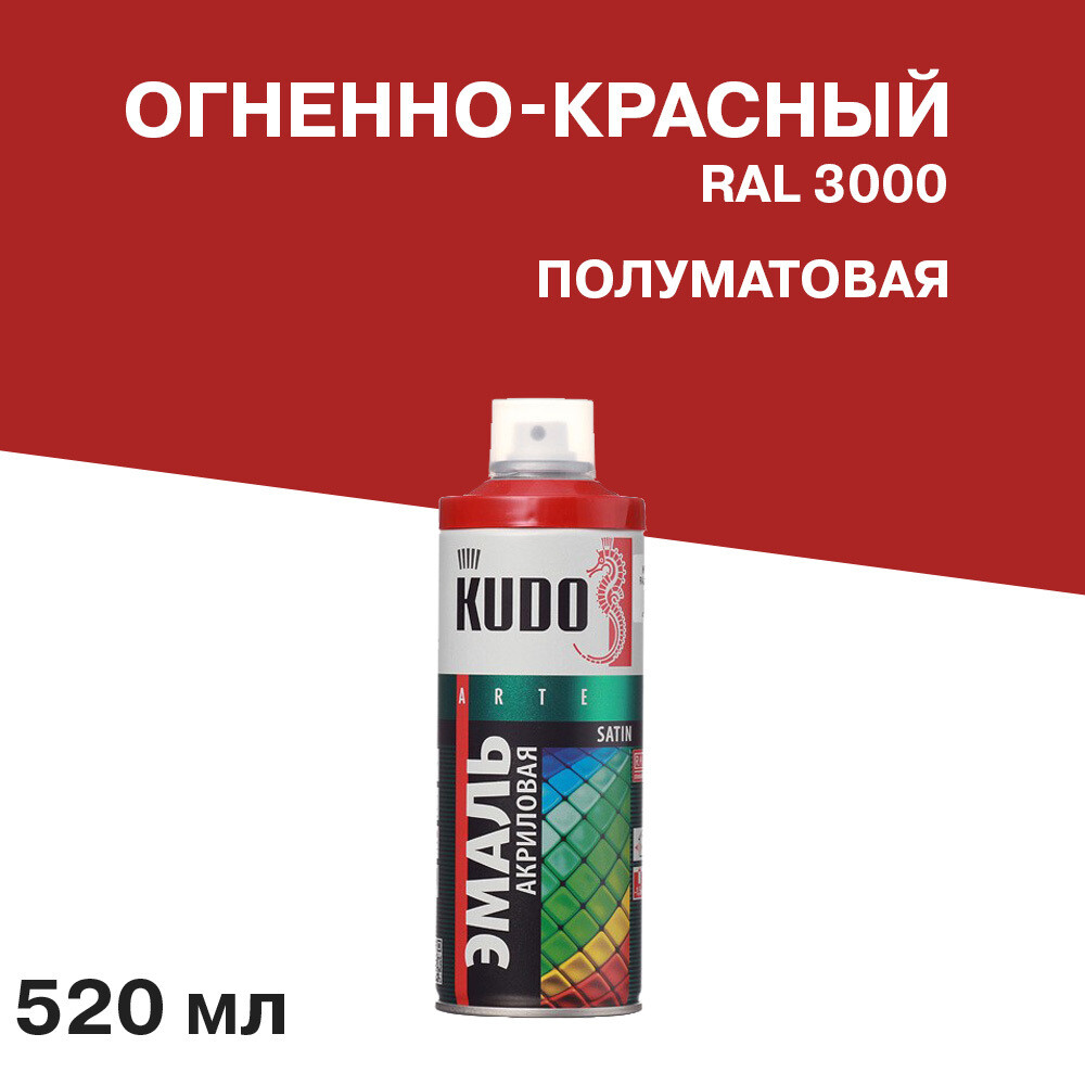 Эмаль аэрозольная Kudo Satin огненно-красная полуматовая RAL 3000 520 мл