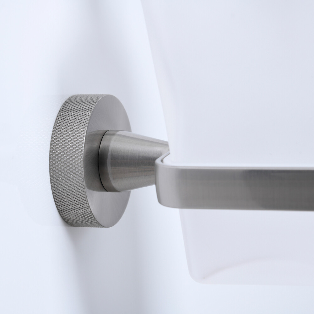 Изделие крепится к стене при помощи монтажной пластины. Монтажная пластина фиксируется к стене саморезами. На монтажной пластине расположены специальные крючки, на которые легко крепится само изделие.