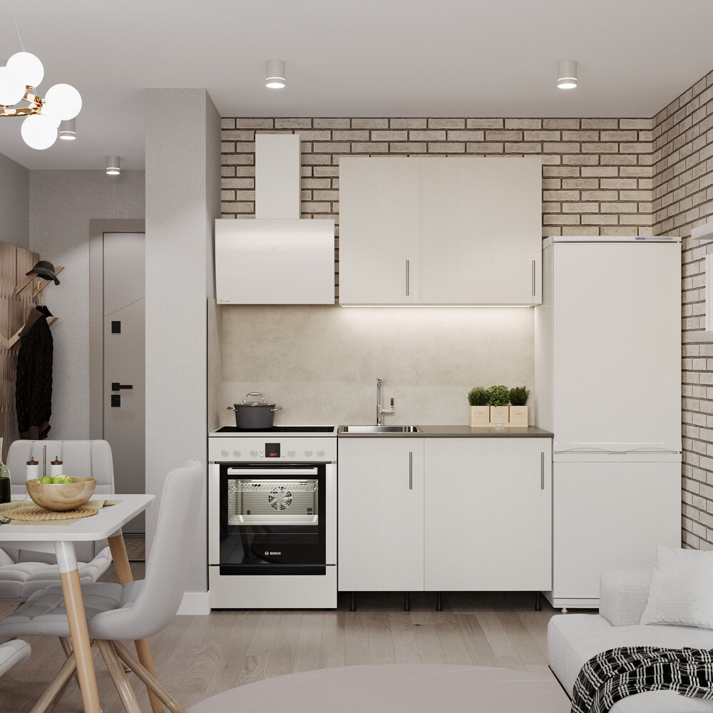 Фасад для кухни — готовая конструкция, устанавливается на фронтальную поверхность шкафа (корпуса). Фасады из ЛДСП устойчивы ко многим внешним воздействиям, невосприимчивы к бактериям, легки в уходе. К фасадам необходимо устанавливать термозащитные планки в модуль с духовым шкафом и ПММ, а также водоотталкивающий уплотнитель на цокольную планку, боковины тумб и секцию под стиральную машину. На фасаде выполнены присадки под петли — d35x13, отверстия под винт — d5х12. Присадки под петли предназначены исключительно для петель бренда Hettich, и для других не подходят.