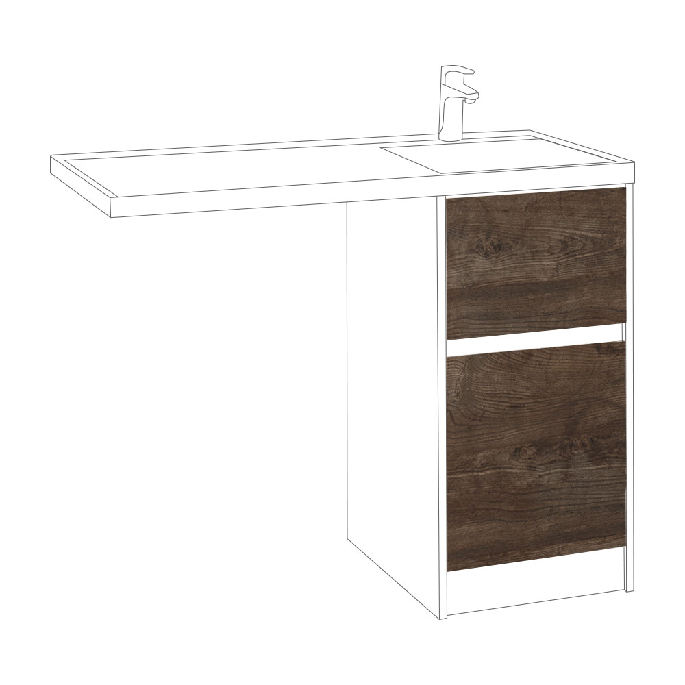 Комплект фасадов для тумбы Лондри под стиральную машину выполнен из влагостойкой ламинированной плиты в древесной отделке цвета Дуб кантри. Корпус тумбы и фасад приобретаются отдельно.