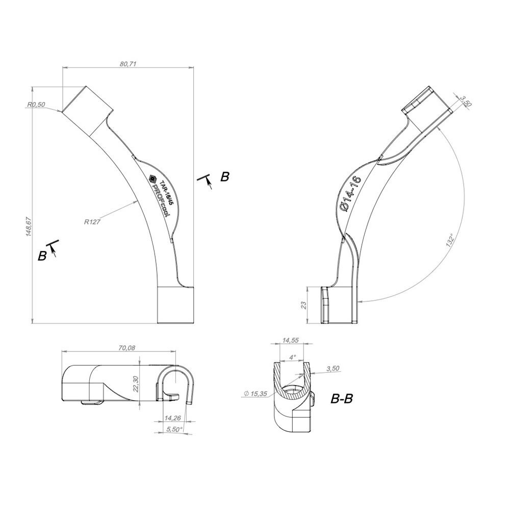 Предназначен для фиксации трубы диаметром 14-16 мм, изогнутую под углом 45 градусов.