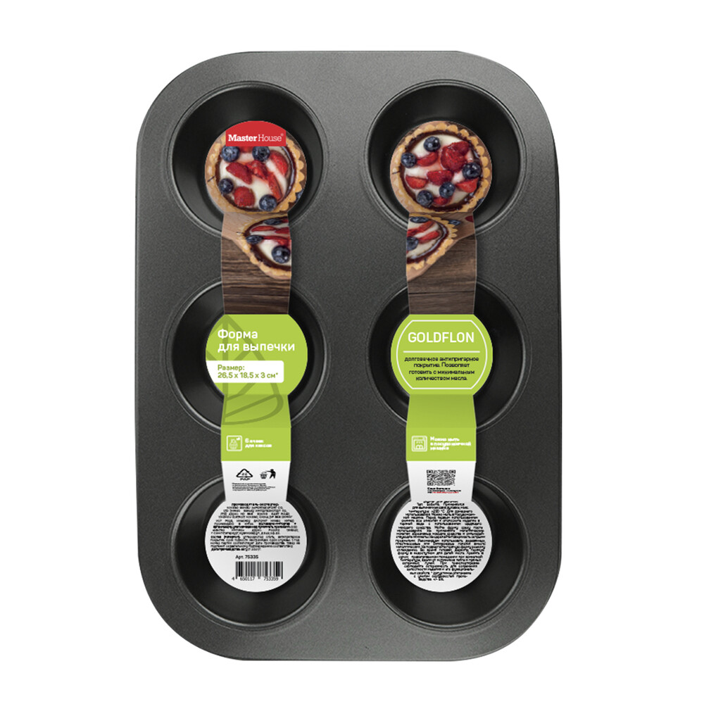 Форма для выпечки Master House Бобетта металлическая 6 ячеек