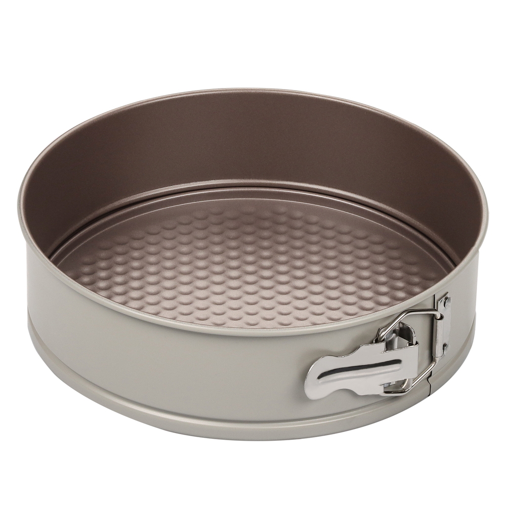 Изготовленная из прочного и высококачественного материала, разъемная форма обладает отличной прочностью и долговечностью. Она не деформируется под воздействием высоких температур, что позволяет безопасно использовать ее в духовке до 230 градусов. Благодаря антипригарному покрытию Goldflon, выпечка легко отделяется от стенок кухонного инвентаря, что облегчает процесс извлечения готового изделия.
