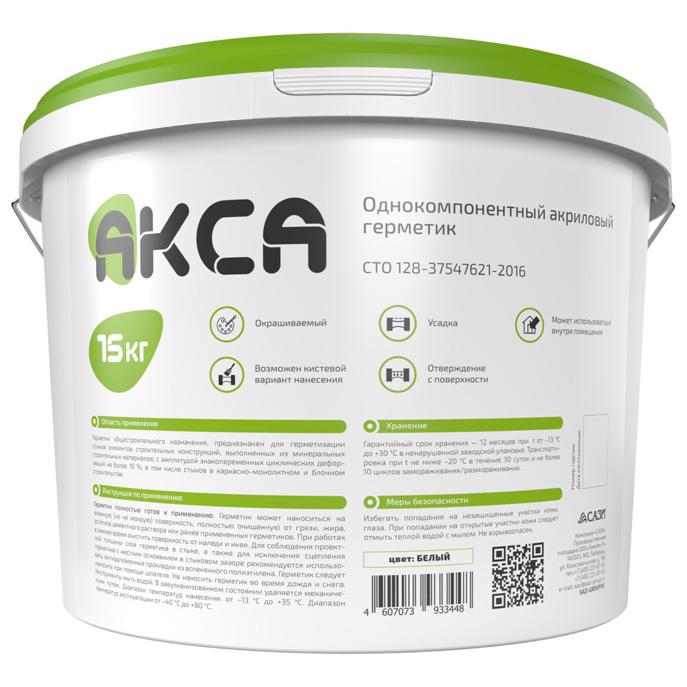 Герметик акриловый для стыков Акса белый 15 кг