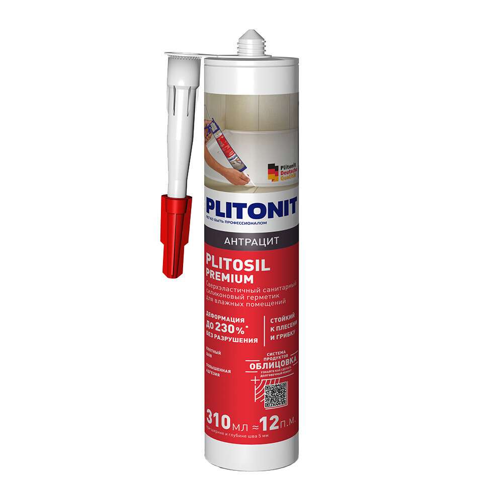 Герметик силиконовый затирка Plitonit PlitoSil Premium антрацит 310 мл