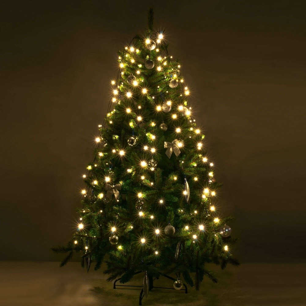 Гирлянда занавес на ель теплый белый 0,45*1,5м IP20 200-003. Гирлянда имеет 8 режимов свечения, переключение происходит последовательно нажатием кнопки на контроллере.