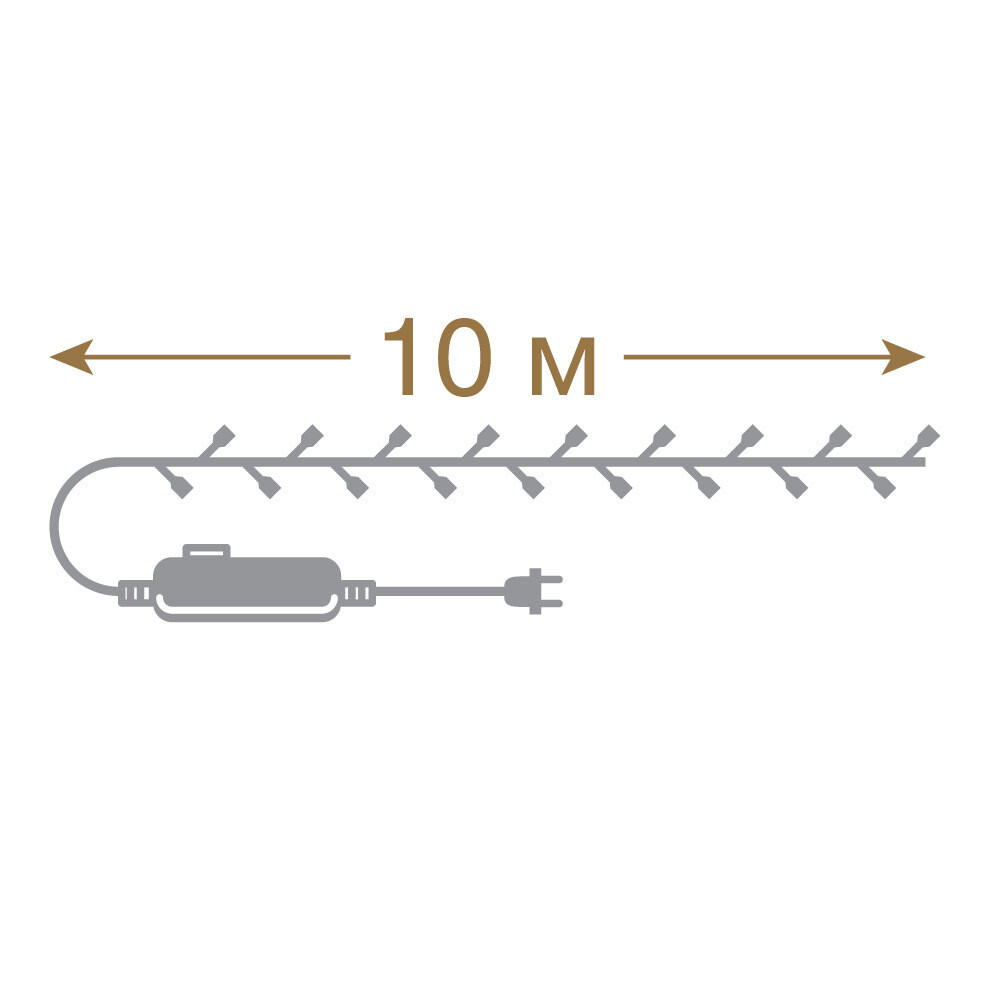 Электрогирлянда – это красивое и эффектное украшение для любого праздника или вечеринки. Состоящая из 100 светодиодов на зеленом проводе, она создаст уютную и теплую атмосферу в любом помещении. Длина гирлянды составляет 10 метров, можно легко распределить ее по всему помещению или повесить вдоль окон. Гирлянда оснащена 8 режимами мигания, что позволяет выбрать наилучший вариант для вашего вечера. Цвет свечения – разноцветный. Срок службы 25 000 часов.