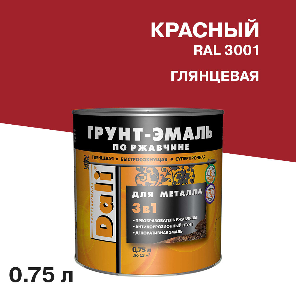 Грунт-эмаль по ржавчине 3в1 Dali красная RAL 3001 глянцевая 0,75 л