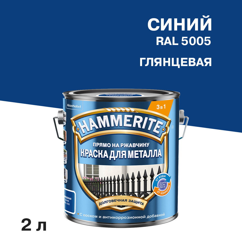 Грунт-эмаль по ржавчине 3в1 Hammerite синяя RAL 5005 гладкая глянцевая 2 л