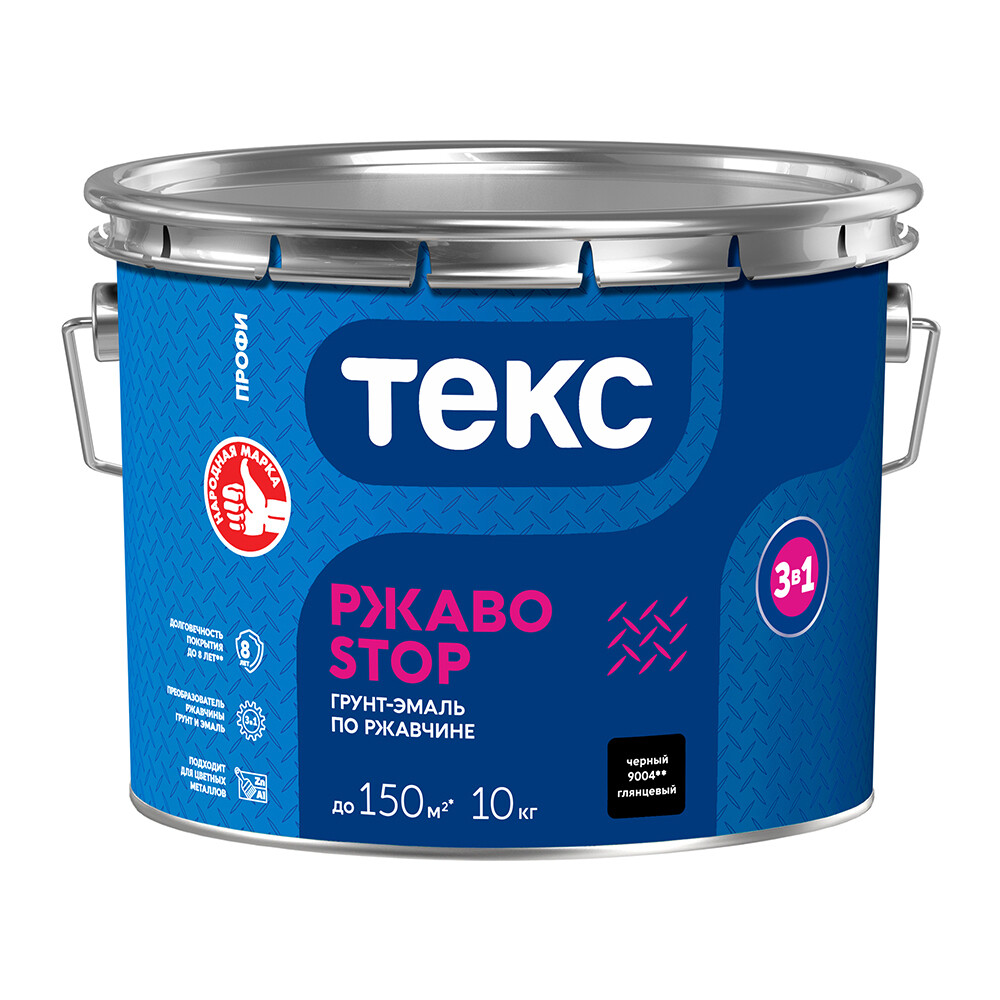 Грунт-эмаль по ржавчине 3в1 Текс РжавоStop черная глянцевая 10 кг