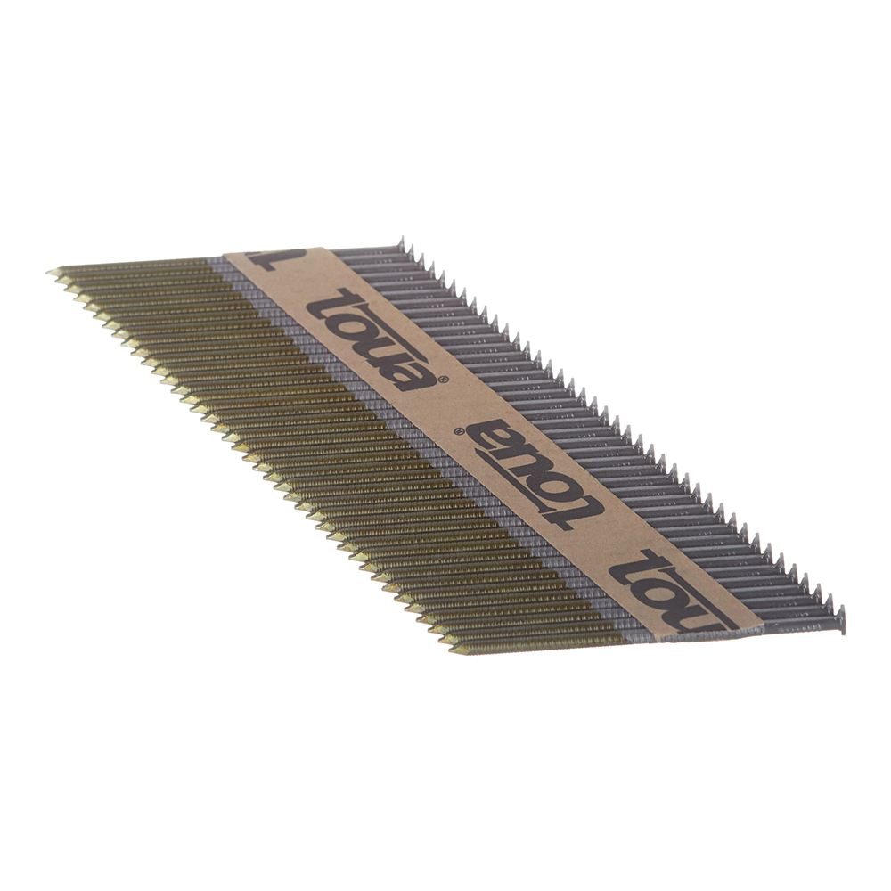 Особенностью реечных гвоздей Toua является точное соблюдение шага между гвоздями в кассете, что позволяет поршню при забивании гвоздя не задевать шляпку соседнего гвоздя и продлевает срок жизни поршня на реечном нейлере с углом наклона магазина 30-34 градуса.