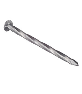 Гвоздь представляет собой длинный и прямой стержень квадратного сечения, завинченный по спирали, с небольшими неровностями рядом со шляпкой, что улучшает качество соединения.