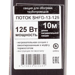 нагревательная секция с термостатом в концевой муфте, инструкция по эксплуатации с гарантийным талоном, установочный кабель длиной 2 метра.