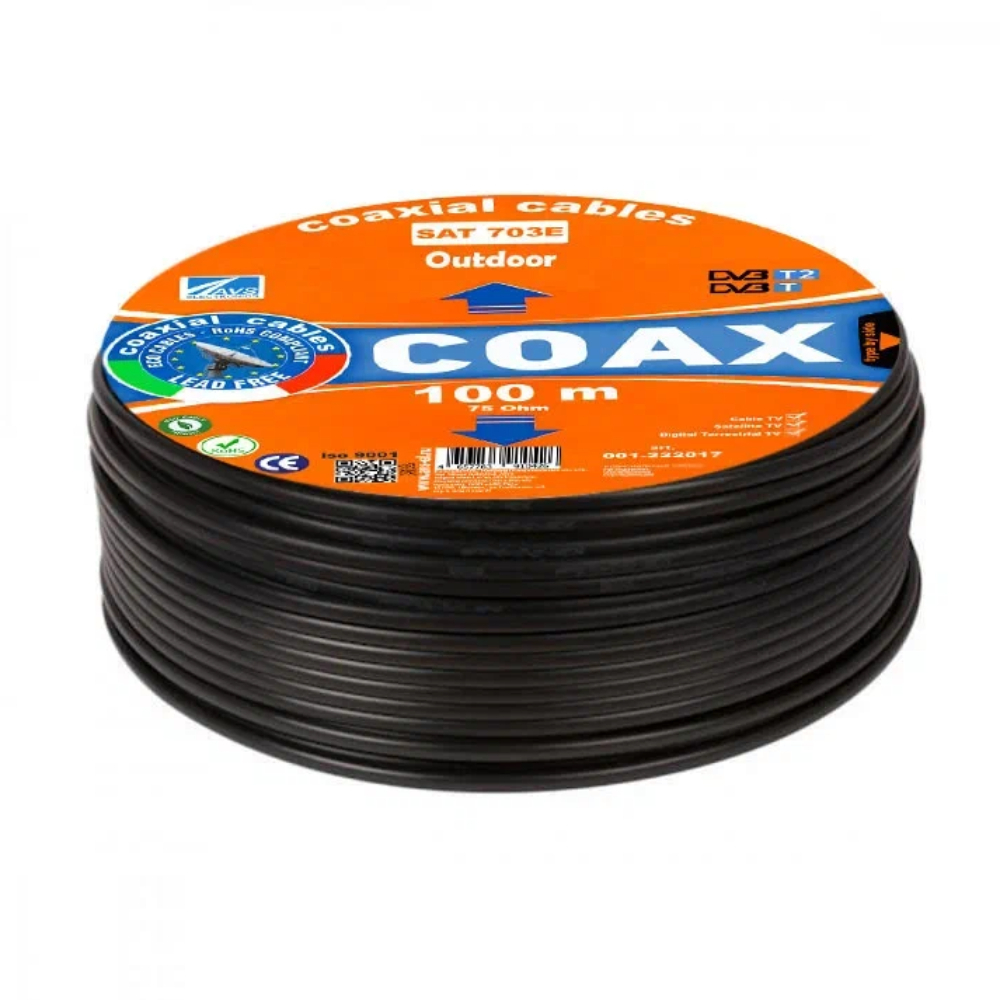 Кабель коаксиальный телевизионный уличный SAT 703E 1х6,8 мм экранированный AVS Electronics черный (100 м)