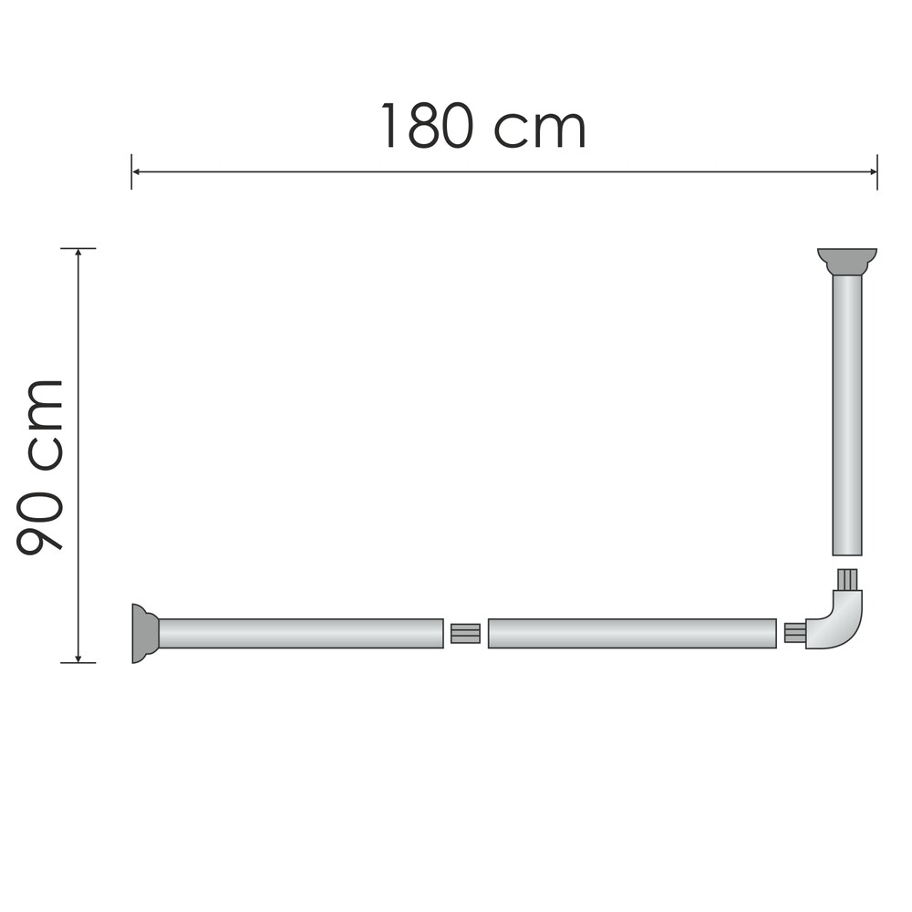 Карниз для ванной 180х90 см сборный Г-образный алюминий белый