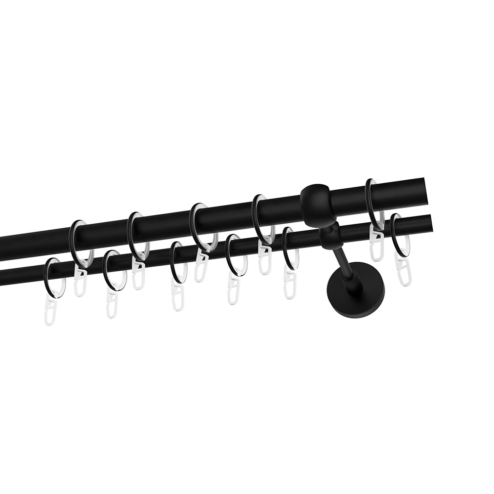 Карниз настенный металлический двухрядный круглый 200 см d20 мм черный