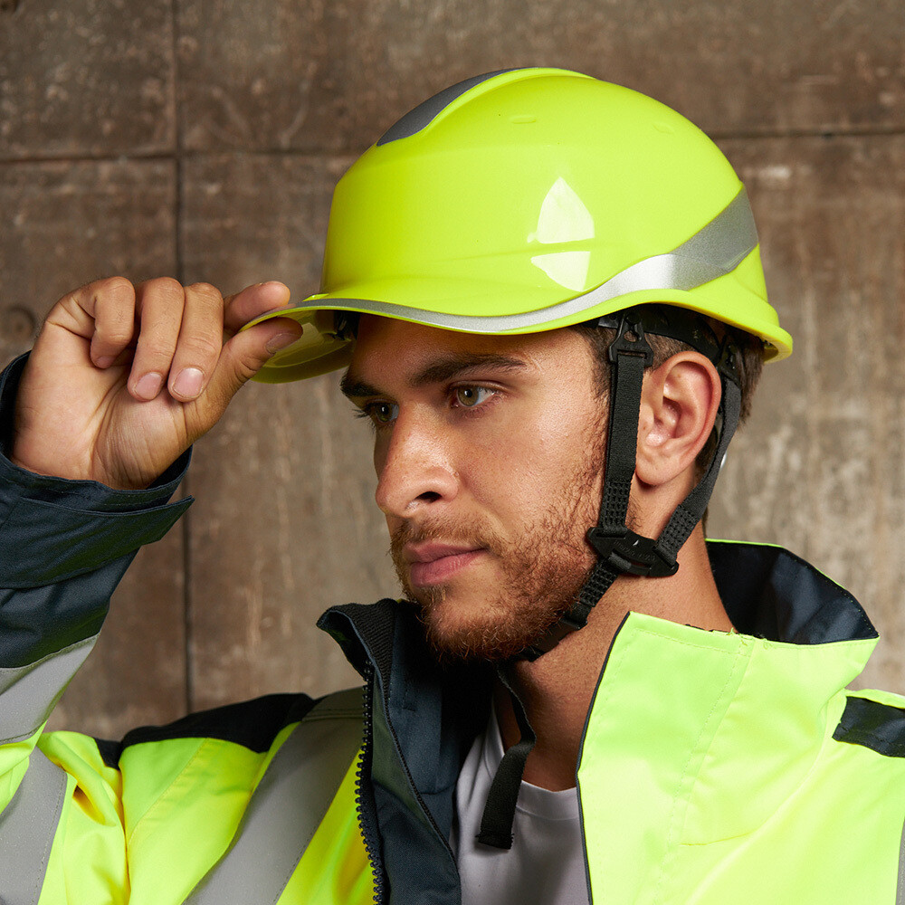 Светоотражающая полоса сверху и по периметру каски.