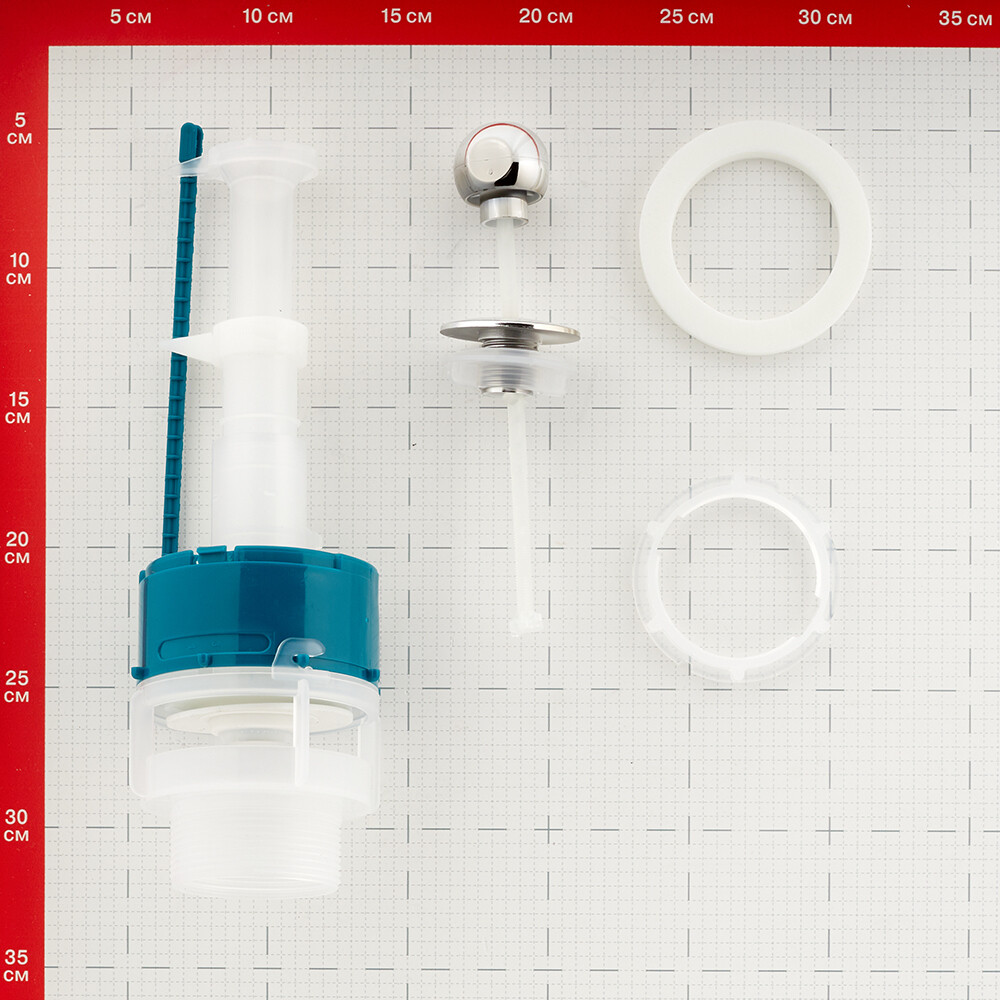 Предназначен для слива воды из бачка унитаза В комплекте прилагается крепление для бачка. Металлизированное покрытие ручки штока сливного клапана.