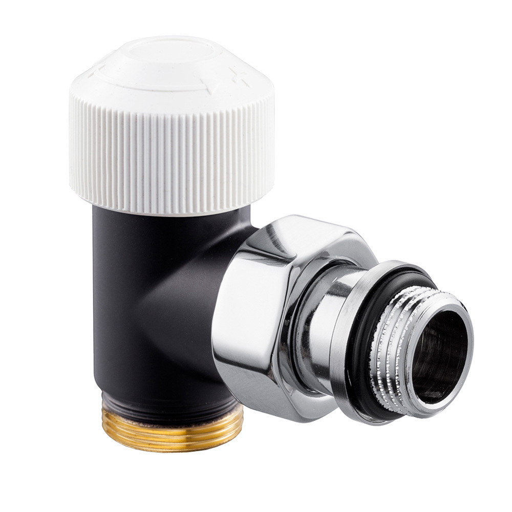 Вентиль SR Rubinetterie серии Tondera на подачу угловой, термостатический, с механизмом предварительной настройки, соединение для медной или многослойной трубы, хвостовик с герметичной прокладкой.