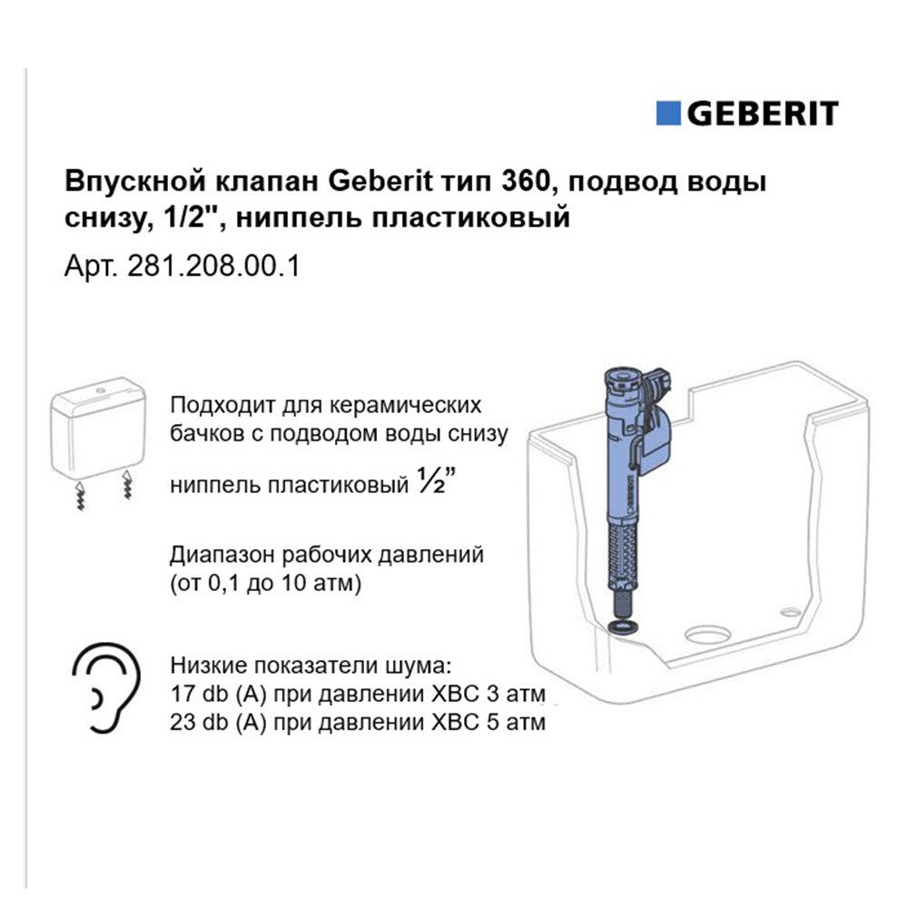 Клапан заливной Geberit нижний подвод 1/2 (281.208.00.1)