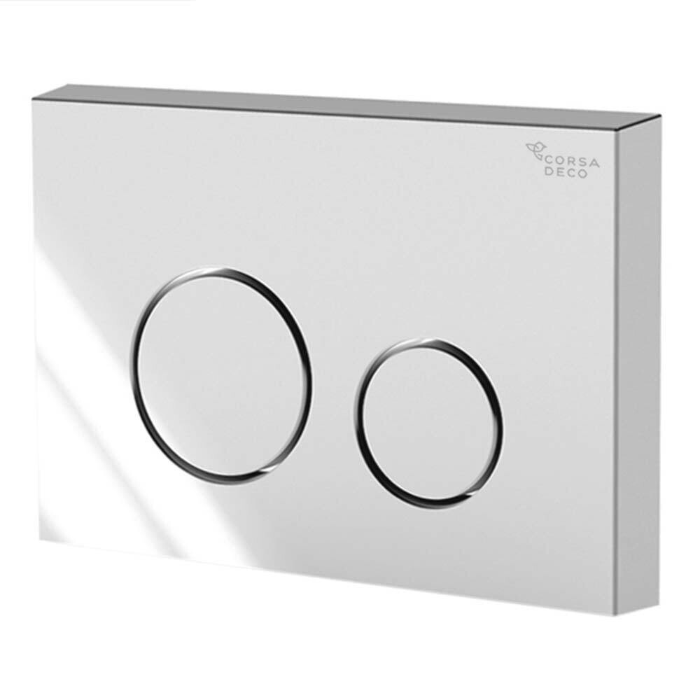 Клавиша смыва предназначена для комплектации инсталляций Corsa Deco серии CХ (код товара — 1138249) и имеет округлые формы кнопок. Отлично сочетается с подвесными унитазами округлых форм бренда Corsa Deco серий — CX (1071819), NX (1071820), FX (1084292), AX (1063504), DX (1077338), KX (1077339), LXV (1071824), LXH (1071825).