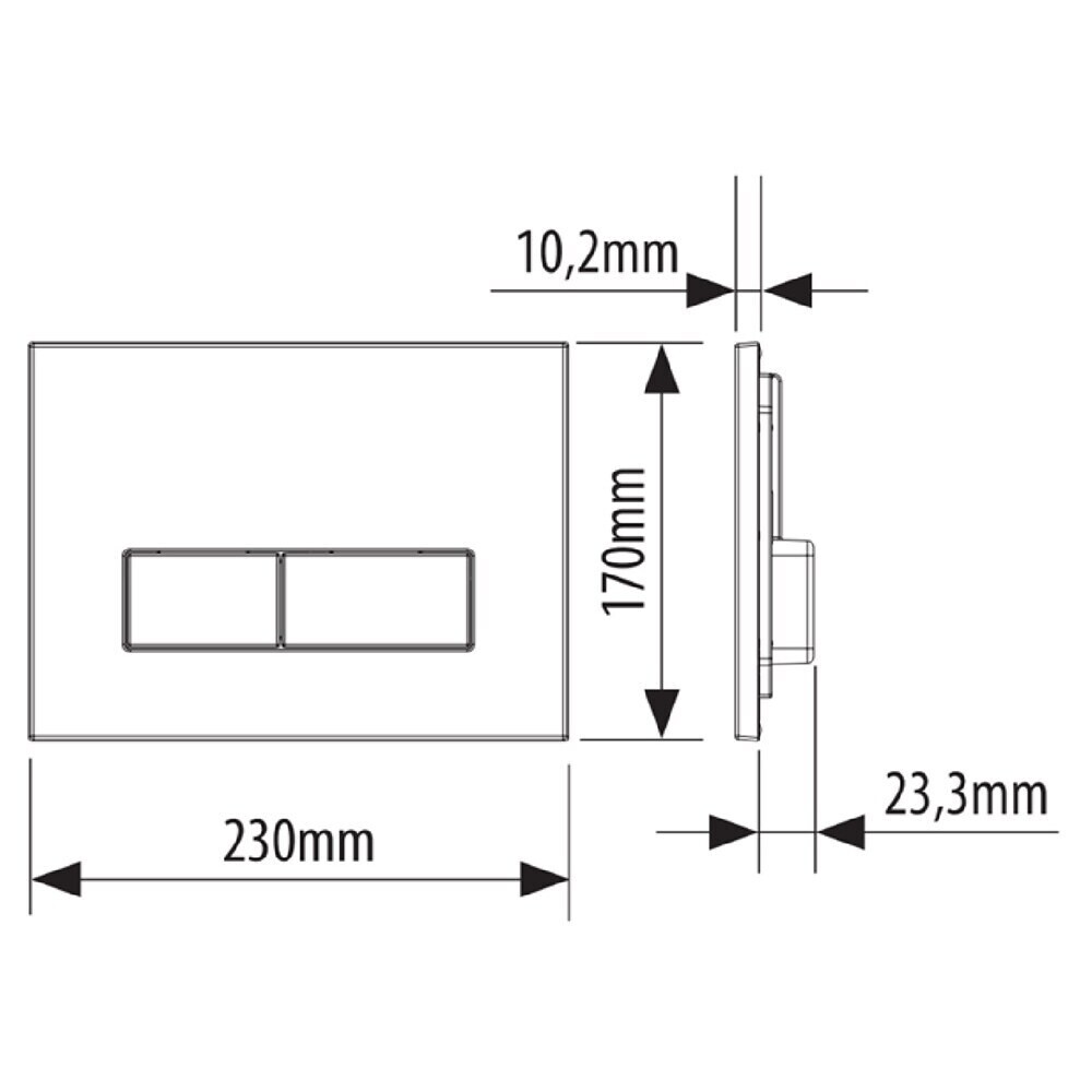Панель изготовлена из ABS-пластика. Хромирование элементов выполнено методом гальванизации. Механическая система двойного слива – 3 и 6 л. Усилие нажима 20Н.