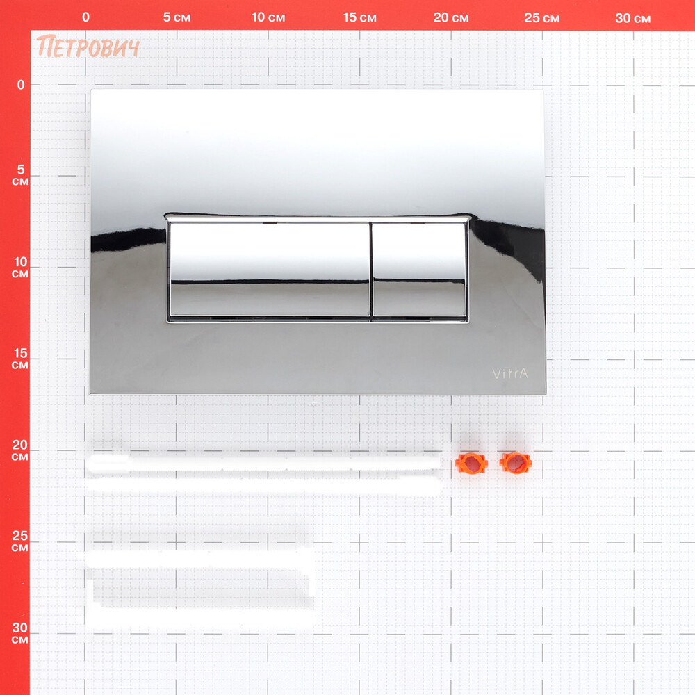 Механическая клавиша смыва имеет два режима и пластиковый корпус. Подходит для использования со встраиваемыми инсталляциями Vitra V-Fix Core. Размеры – 244х165х8 мм. Гарантия 5 лет