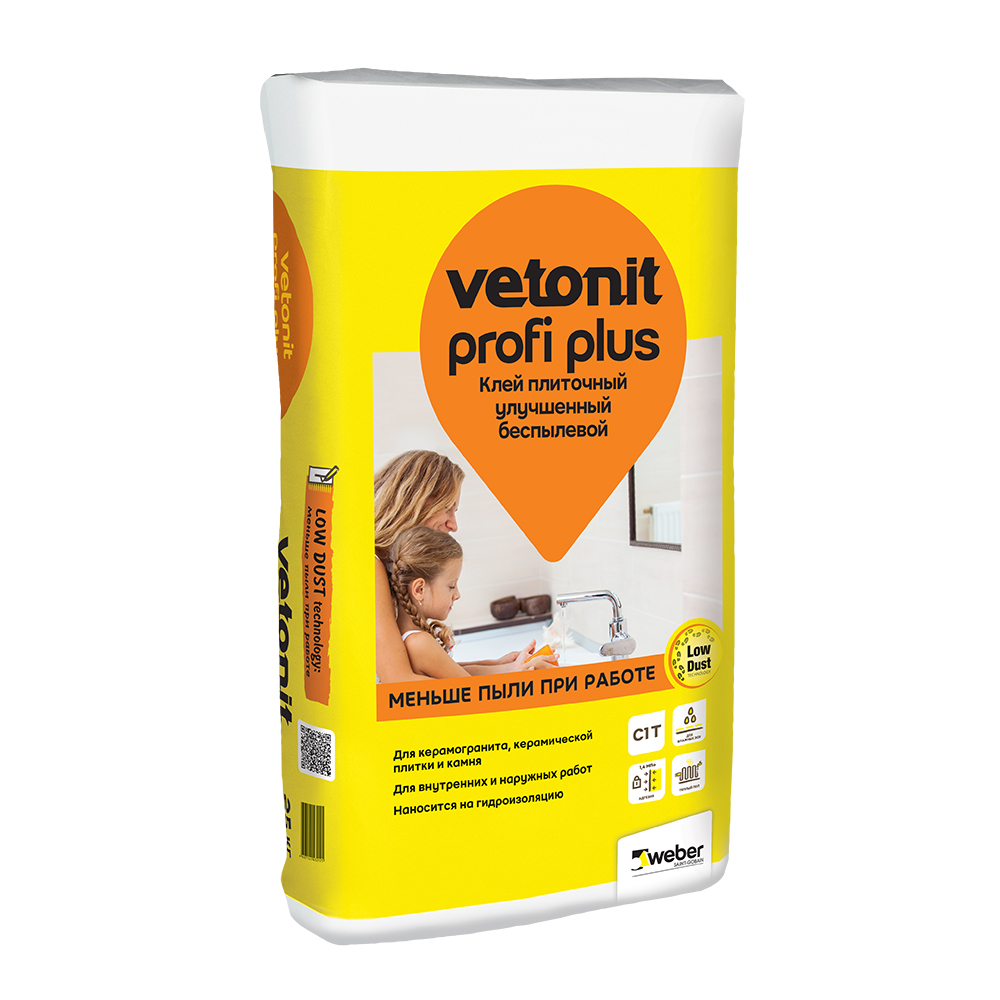 Клей для плитки/ керамогранита/ мозаики/ камня Vetonit Профи Плюс беспылевой серый класс C1 T 25 кг