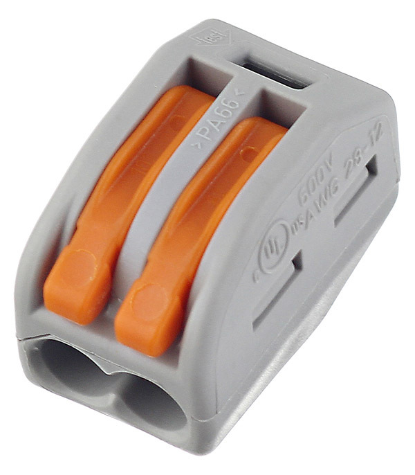Клемма на 2 провода Wago 0,08-2,5 кв.мм с рычажками без пасты (50 шт.) (222-412/2650)