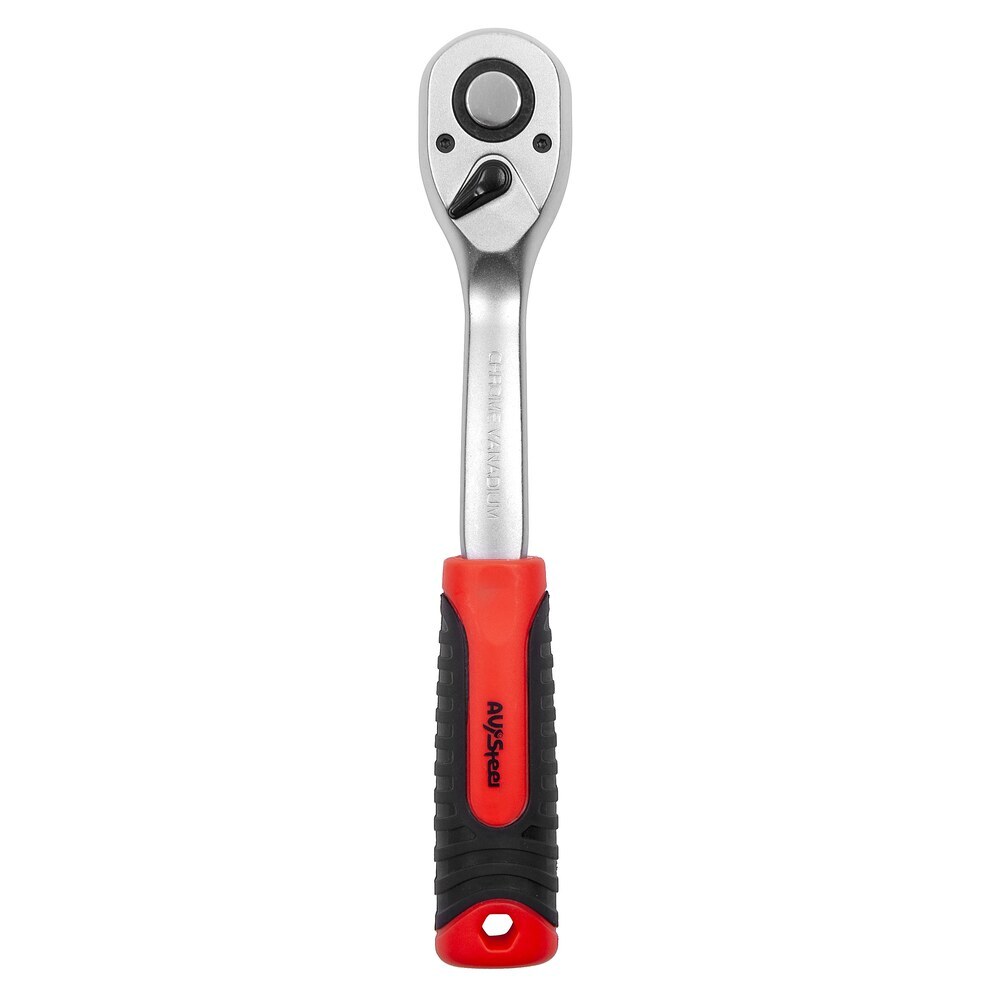 Ключ-трещотка AV Steel 1/2х255 мм 72 зубца с изогнутой двухкомпонентной рукояткой