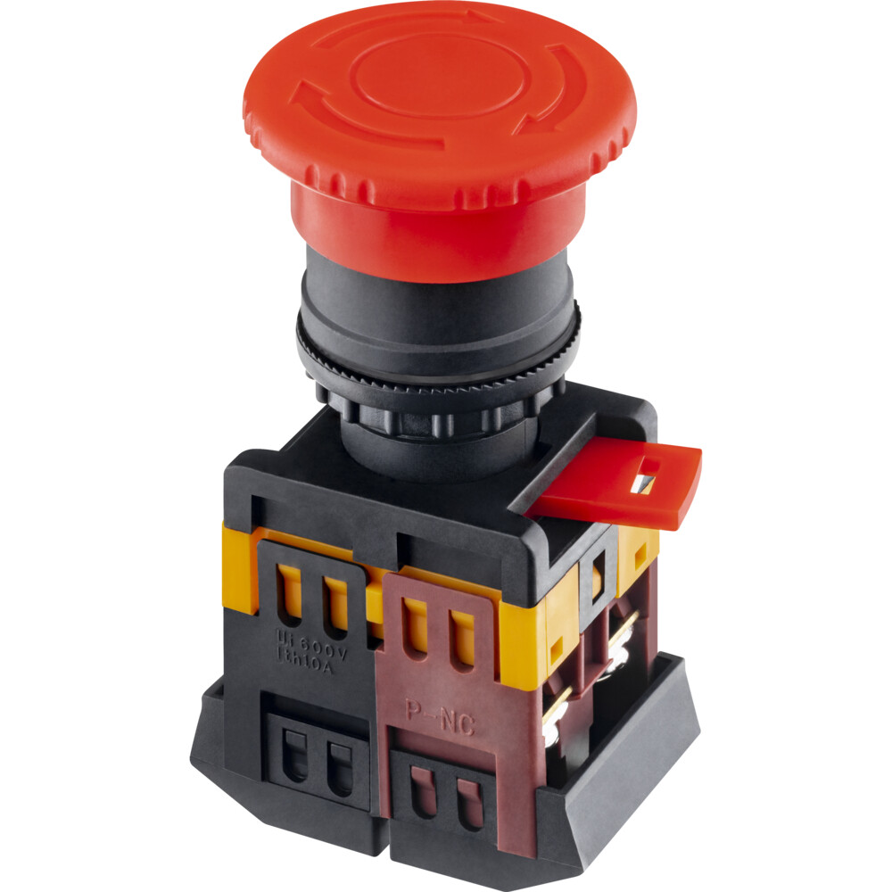 Кнопка «Грибок» с фиксацией красного цвета с номинальным напряжением 660В предназначена для управления контакторами и реле автоматики в электрических цепях.
