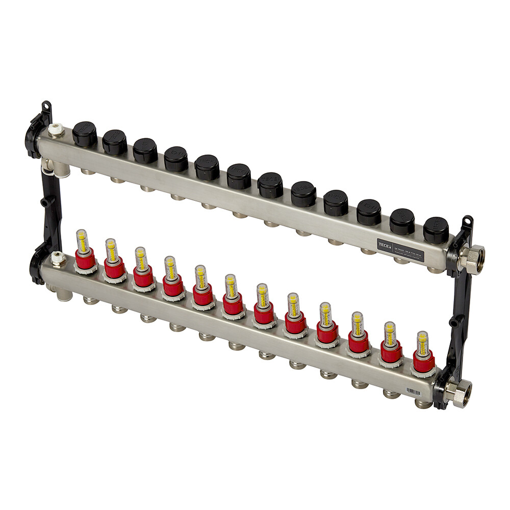 Коллектор для теплого пола Tece 1 ВР(г) х 12 выходов 3/4 НР(ш) ЕК х 1 ВР(г) с расходомерами (77310012)