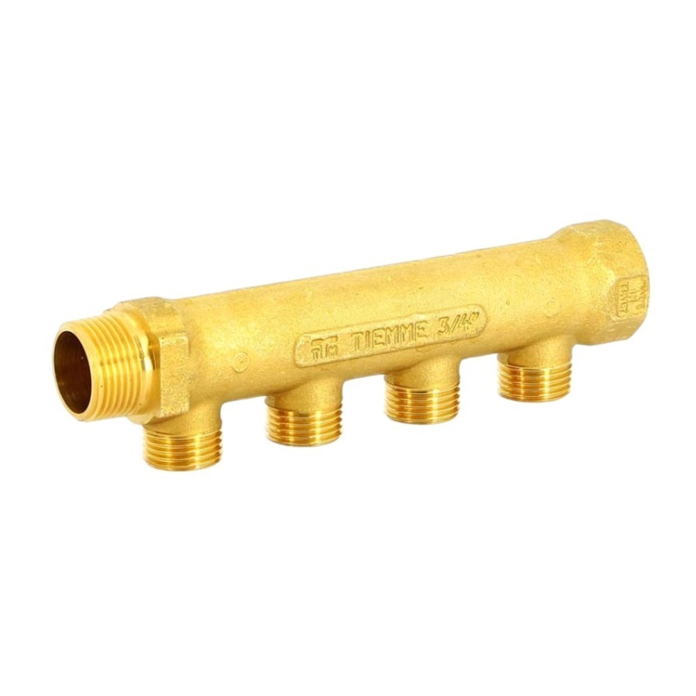 Коллектор Tiemme 3/4 ВР(г) х 4 выхода 3/4 НР(ш) ЕК х 3/4 НР(ш) регулируемый (1910022)