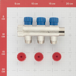 Коллектор Valtec 3/4 ВР(г) х 3 выхода 1/2 НР(ш) х 3/4 НР(ш) регулируемый (VTc.560.N.0503)