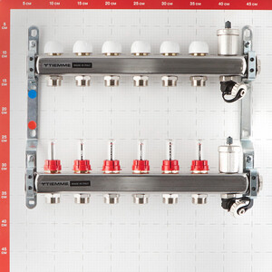 Коллекторная группа с расходомерами Tiemme 1 ВР(г) х 6 выходов 3/4 НР(ш) ЕК х 1 ВР(г)