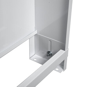 Крепление шкафа к полу осуществляется с помощью отверстий в выдвижных ножках, а к стене – с помощью отверстий в задней стенке.